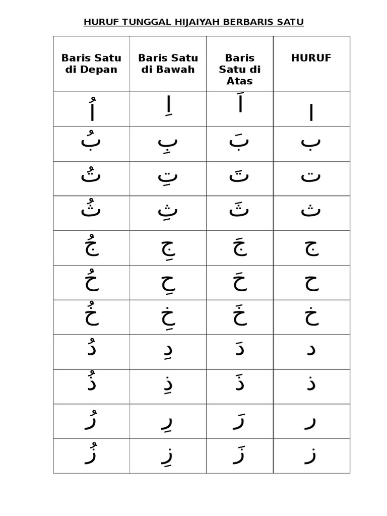 Huruf Hijaiyah Baris Depan